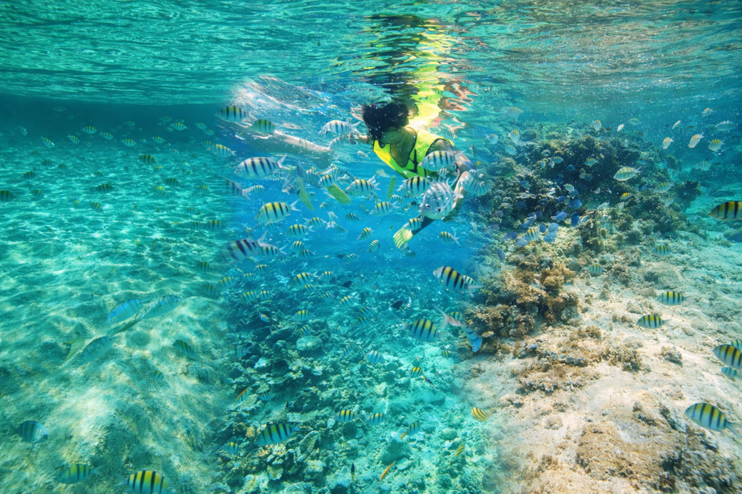 Snorkeling along the coral reef just off the beach